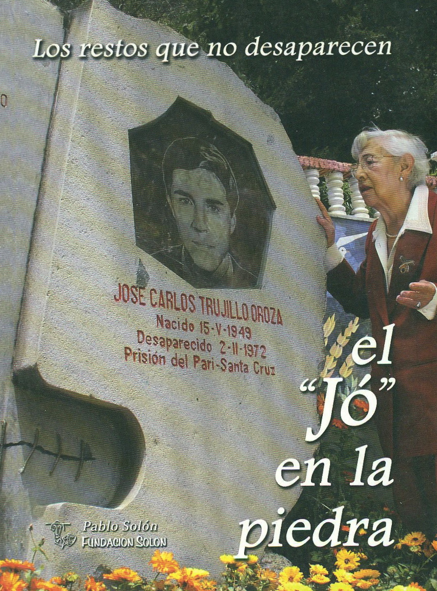Jó fue toda la vida. Su apodo era su nombre de guerra. José Carlos Trujillo Oroza tenía 22 años cuando fue detenido y torturado brutalmente en la prisión de “El Pari” de la ciudad de Santa Cruz. Su madre, Gladyz Oroza de Solón, lo vio por última vez el 2 de febrero de 1972. Eran los tiempos de la dictadura de Hugo Banzer Suarez. Esta es una parte de su historia. La otra parte sólo la conocen sus verdugos y la piedra. Esa piedra que en el imaginario de Solón representa la memoria del inconsciente colectivo de la historia a la cual nadie ni nada puede escapar.