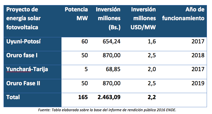 Si todos los proyectos solares de Bolivia estarían en funcionamiento para el 2018 sólo representarían un 6% de las iniciativas fotovoltaicas que tendrían en operación Chile para ese mismo año.