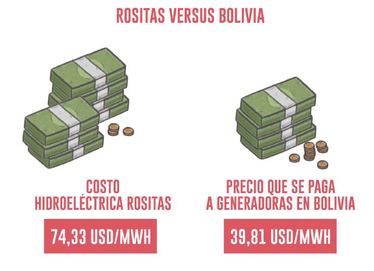 Rositas generará electricidad a un costo de 74,33 USD/MWh cuando el precio promedio de compra de generadoras eléctricas en Bolivia está en 39,81 USD/MWh.