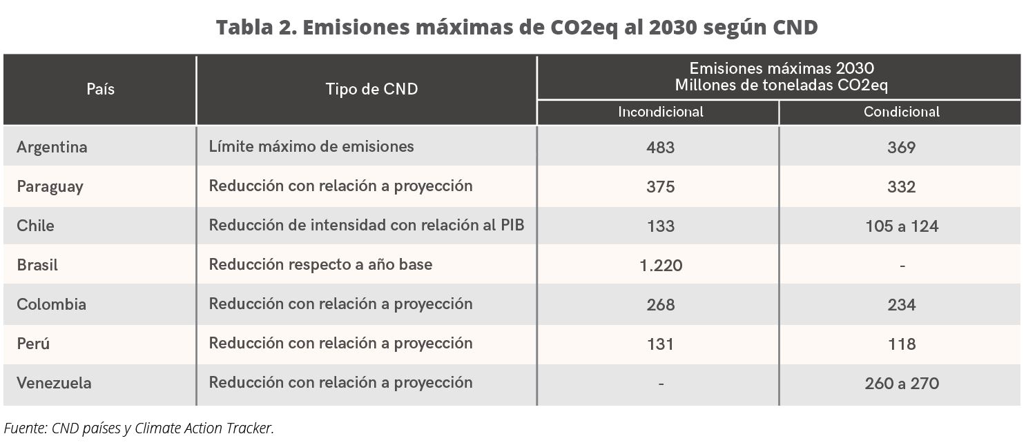 Los cuatro primeros tipos de CND, aunque utilizan diferentes metodologías, pueden ser medidos, cuantificados y uniformizados en base a ciertos parámetros. Por ejemplo, la CND de Paraguay señala que su proyección de emisiones sería de 416 millones de toneladas de dióxido de carbono equivalente (MtCO2eq) para el año 2030. Esto significa que si reduce un 10% de sus emisiones con relación a su proyección, el año 2030 emitiría no más de 375 MtCO2eq al año. Igualmente, la contribución de Chile que está expresada en términos de reducción de intensidad con relación a unidad del PIB, significa que este país no emitiría más de 133 MtCO2eq para el año 2030.