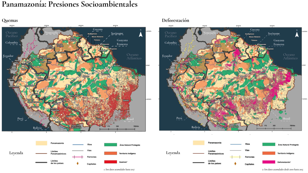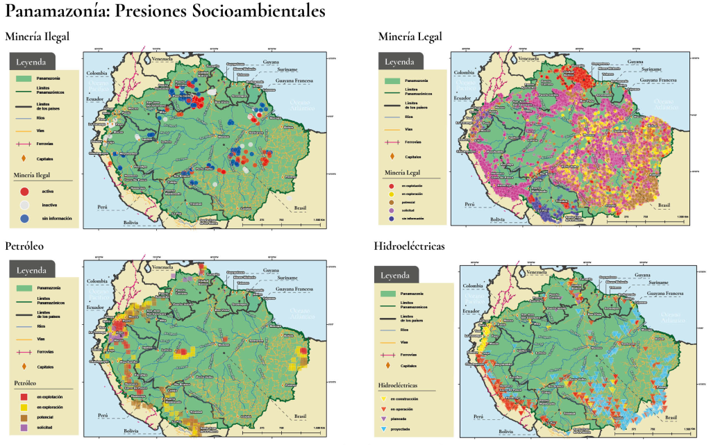 La panamazonía es una región de grandes conflictos socioambientales producto de las dinámicas económicas de carácter extractivista impulsadas por los diferentes Estados que conforman su territorio. De acuerdo a la REPAM, las principales actividades que provocan el conflicto socioambiental en esta región son la minería (tanto legal como ilegal), la explotación petrolífera, las hidroeléctricas, las quemas y la deforestación.