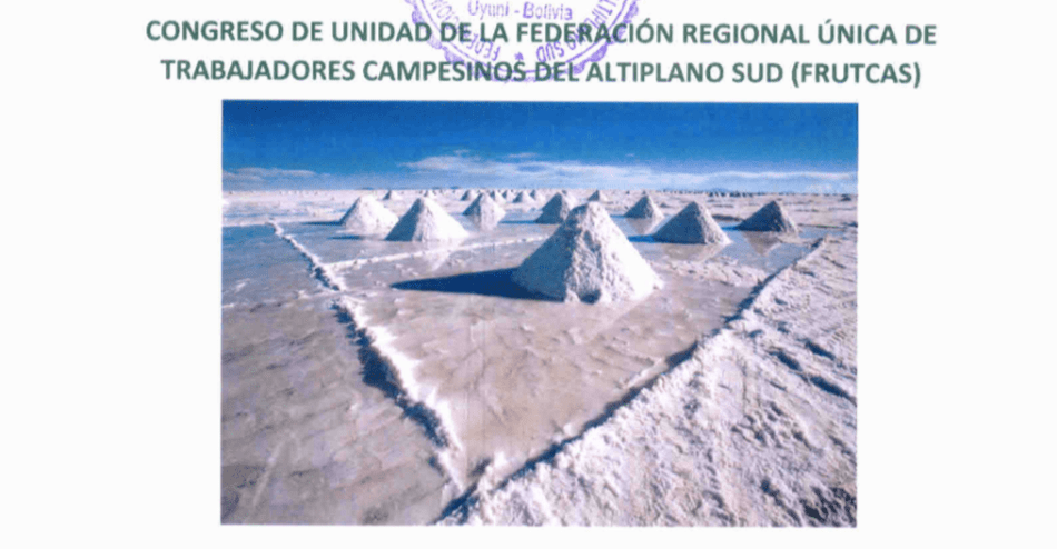 El Congreso de Unidad de la Federación Regional Única de Trabajadores Campesinos del Altiplano Sud (FRUTCAS) realizado en la ciudad de Uyuni el pasado 21 y 22 de diciembre del 2019 resolvió exigir al gobierno transitorio y a YLB toda la información sobre la industrialización del litio y la aplicación del consentimiento previo libre e informado.
