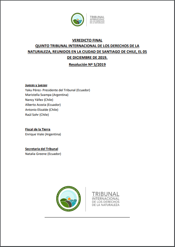 El quinto Tribunal Internacional de los Derechos de la Naturaleza, celebrado el pasado 5 de diciembre en Santiago de Chile, resolvió aceptar el caso de ecocidio en la Amazonía, la Chiquitania y otros bosques colindantes y determinó enviar en los próximos meses una comisión a Bolivia para realizar una vista in-situ a la zona afectada con el objetivo de recabar mayor información y evidencias, constatar la magnitud de la violación a los derechos de la naturaleza, entrevistarse con los diferentes actores estatales y no estatales, y verificar el cumplimiento de las medidas cautelares que ha dispuesto en su veredicto para que no se agrave ni repita el ecocidio en la Chiquitania y la Amazonía.