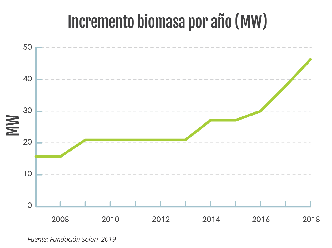 El 2019 según el informe de inyecciones del CNDC las centrales de biomasa duplicarían su generación eléctrica llegando a 114,8 GWh debido a la incorporación de una nueva planta del ingenio azucarero Aguaí y a una mayor generación de UNAGRO y Easba.