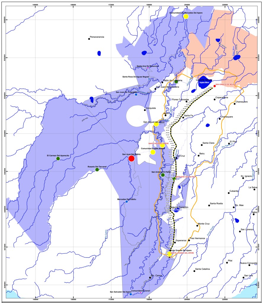 Bancos de préstamo: sobre el río Apere y sobre el río Yucumicito.