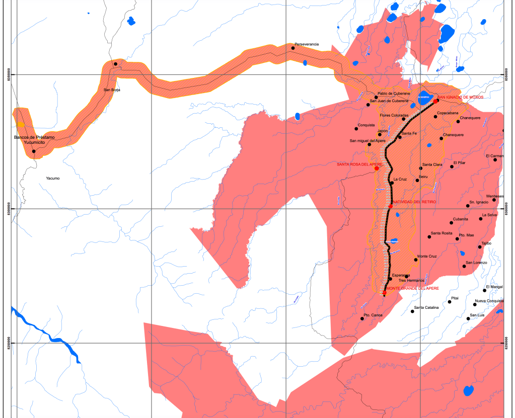 El Documento Base de Contratación (DBC) de 2008 establecía una sola ruta con el siguiente detalle: “la carretera Villa Tunari San Ignacio de Moxos tiene una longitud aproximada de 306 km. y que pasaría por las siguientes poblaciones: Eterazama, Isinuta, Puerto Patiño [PNIS], Santísima Trinidad [PNIS], Puerto Santo Domingo [TIPNIS], Puerto Esperanza [TIPNIS], Monte Grande [TIM], El Retiro [TIM] y San Ignacio de Moxos”. El EEIA-AI realizado por Connal en 2010, basado en una justificación poco clara, estableció los límites acordados entre las autoridades para las fichas ambientales: