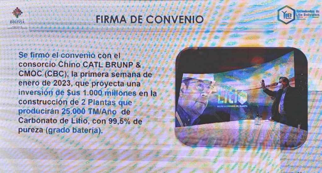 Mucho se especula con lo que realmente es el convenio entre Yacimientos de Litio Bolivianos (YLB) y las empresas chinas CATL, BRUNP y CMOC, también conocido como consorcio CBC. Algunos dicen que es un contrato para formar una empresa mixta similar al que firmó YLB con la empresa alemana ACISA, otros sostienen que es solo un convenio, y no faltan quienes afirman que esto significa la pérdida del salar de Uyuni en favor de los chinos. La realidad es que la poca transparencia –en cuanto al convenio– ha suscitado una innumerable cantidad de rumores y especulaciones sobre cómo avanza el proceso de industrialización del litio en Bolivia. Trataremos de desentrañar en qué consiste este convenio a partir de las declaraciones de las autoridades y de unas pocas diapositivas en PowerPoint que presentó YLB en el Altiplano sud.