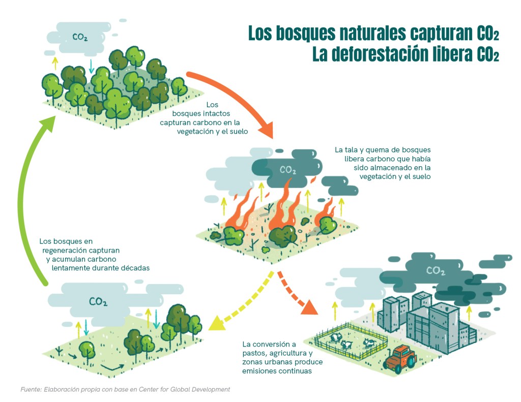 El argumento central de REDD+ es que la deforestación relacionado a uso y cambio de uso de suelos y silvicultura (LULUCF por sus siglas en inglés) representa uno de las actividades que más contribuyen a las emisiones de GEI antropogénicas, representando, según el más reciente reporte especial del Grupo Intergubernamental de Expertos sobre el Cambio Climático (IPCC), hasta el 23% de las emisiones globales. Empero, los bosques también cumplen la función de absorber dióxido de carbono de la atmósfera, lo que se conoce como sumidero de carbono.