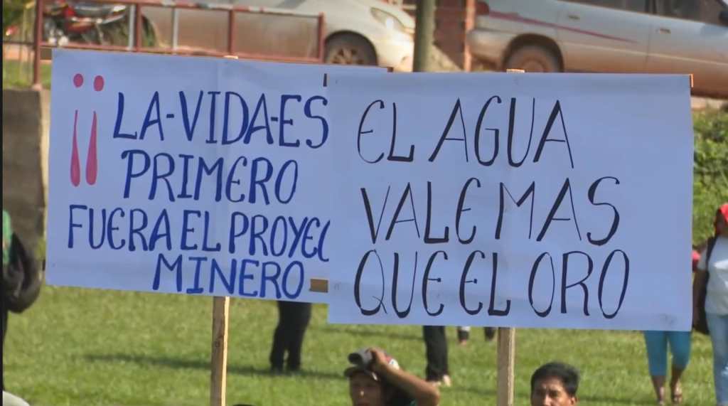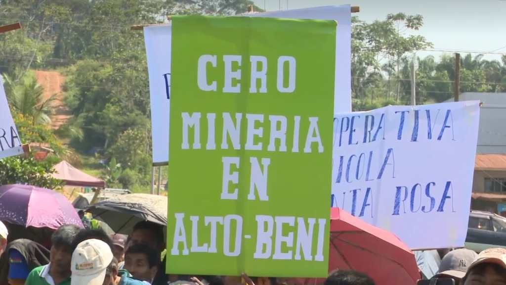 El director Alvaro Antezana, vistiendo la polera verde de los municipios libres de minería, afirma ante la multitud que todas las solicitudes de contratos mineros han sido suspendidas en Palos Blancos y Alto Beni. Los presentes aplauden pero sus miradas de desconfianza no se disipan, porque saben que dicha sentencia está en proceso de revisión en el Tribunal Constitucional Plurinacional (TCP) y todo es posible con los magistrados autoprorrogados.