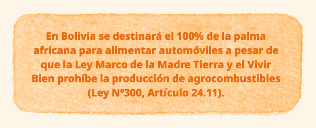 Veintiún corregidores del Consejo Indígena del Pueblo Tacana (CIPTA) reunidos el 7 y 8 de marzo de 2024 en la comunidad de Nueva Esperanza aprobaron un voto resolutivo que: “rechaza el programa de PALMA ACEITERA AFRICANA y [resuelve] su paralización en todas las comunidades de nuestro territorio”. Según Jorge Canamari Lora, presidente del CIPTA, la determinación del Consejo de Corregidores dio por paralizado este programa de la palma africana por vulnerar los derechos a la consulta previa ya que nunca se consensuo dicho programa con la máxima instancia de autogobierno del pueblo Tacana. El 8 de julio los comunarios de Santa Rosa de Maravilla con la participación del directorio del CIPTA, determinaron el desalojo inmediato del territorio Tacana del Programa de Fomento a la Producción de Especies Oleíferas del Instituto Nacional de Innovación Agropecuaria y Forestal (INIAF), y dieron un plazo hasta el 20 de julio para el desalojo de dicho programa. Los motivos de la molestia fueron el irrespeto a la resolución del Consejo de Corregidores del Pueblo Tacana del 8 de marzo, el ingreso al vivero sin permiso de la comunidad, la desinformación y la falta de coordinación. A fines de agosto de 2024, comunarios y dirigentes del CIPTA constataron que el vivero ubicado en la comunidad de Santa Rosa de Maravilla se encontraba abandonado y que los plantines de palma africana se estaban amarillando sin agua, sin que el INIAF hubiera procedido a retirarlos de su territorio. En dicha oportunidad Jorge Canamari Lora manifestó “Nos hemos enfrentado al propio estado boliviano al decirle no a la palma africana en el territorio Tacana. Los territorios ancestrales donde practicamos caza y pesca actualmente están siendo demandados por terceras personas. Con estos hermanos allegados a nuestro territorio, después de abrirles las puertas, ellos, desconociendo la existencia del pueblo Tacana, quieren pedir en voz alta la ampliación de la frontera agrícola”. Para el presidente del CIPTA la ampliación de la frontera agrícola va a desmontar todos los lugares donde ancestralmente el pueblo Tacana practicaba la caza, la pesca, y la recolección de frutos con los cuales sostienen a sus familias. El agroecólogo Daniel Robison, fallecido el pasado 19 junio, alertó: “Si realmente entran con la palma, el impacto ambiental va a ser más de lo que piensan. Habrá por lo menos 200.000 hectáreas de deforestación, directa e indirecta”. El pueblo Tacana ha frenado el avance de la palma africana implementado por el gobierno a través del INIAF pero la presión por expandir la frontera agrícola no se detiene.