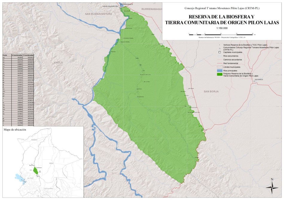 Plano georreferenciado de La Reserva de la Biósfera y Tierra Comunitaria de Origen Pilón Lajas