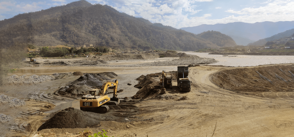 Extracción mecanizada de oro mediante remoción de material aluvial en el Río Kaka