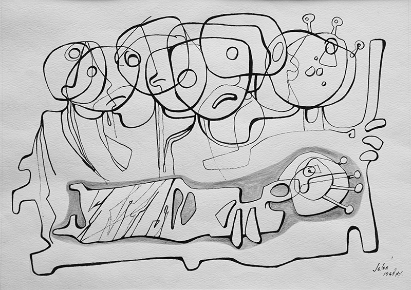 Hablar entrelíneas, dibujar entre líneas y vivir entregolpes. Lo implícito en la palabra, el trazo en el dibujo y el sobresalto en la vida. Nada era totalmente explícito en esos tiempos. Todo podía ser y no ser. Solón terminaba de concluir sus dibujos a pluma y tinta china: “Entre Líneas”. Un homenaje al garabato y a la línea continua que se pierde en la línea.